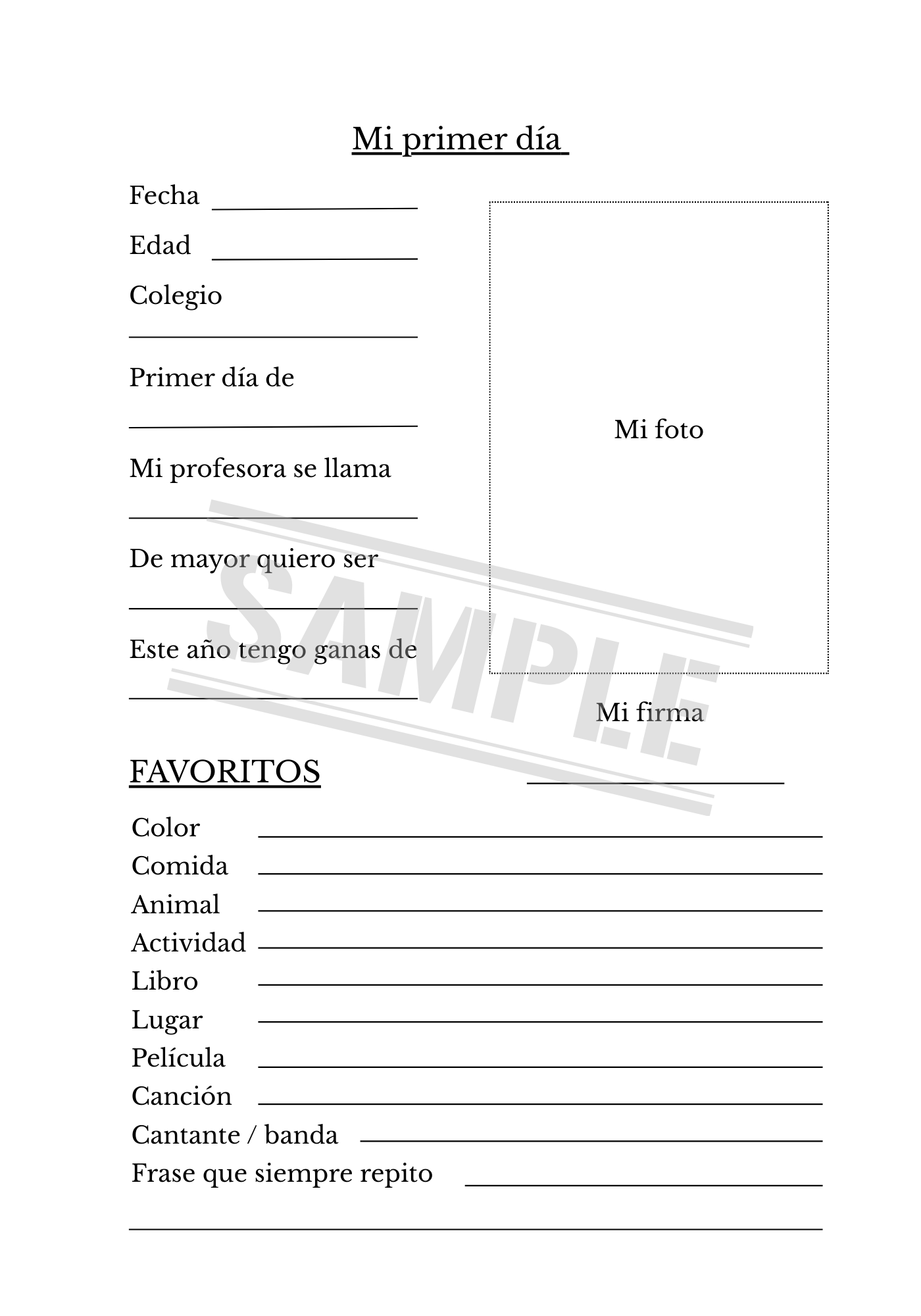 Un diario imprimible para guardar los recuerdos de cada curso escolar a través de entrevistas: favoritos, sueños y fotos que capturan cómo es tu peque en cada etapa. Un tesoro para toda la vida.